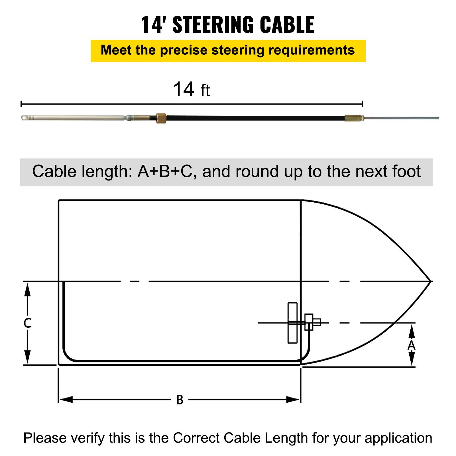 - Note: Please measure the length of your boat A+B+C (steering wheel to cylinder) according to our picture, and order the size you need.