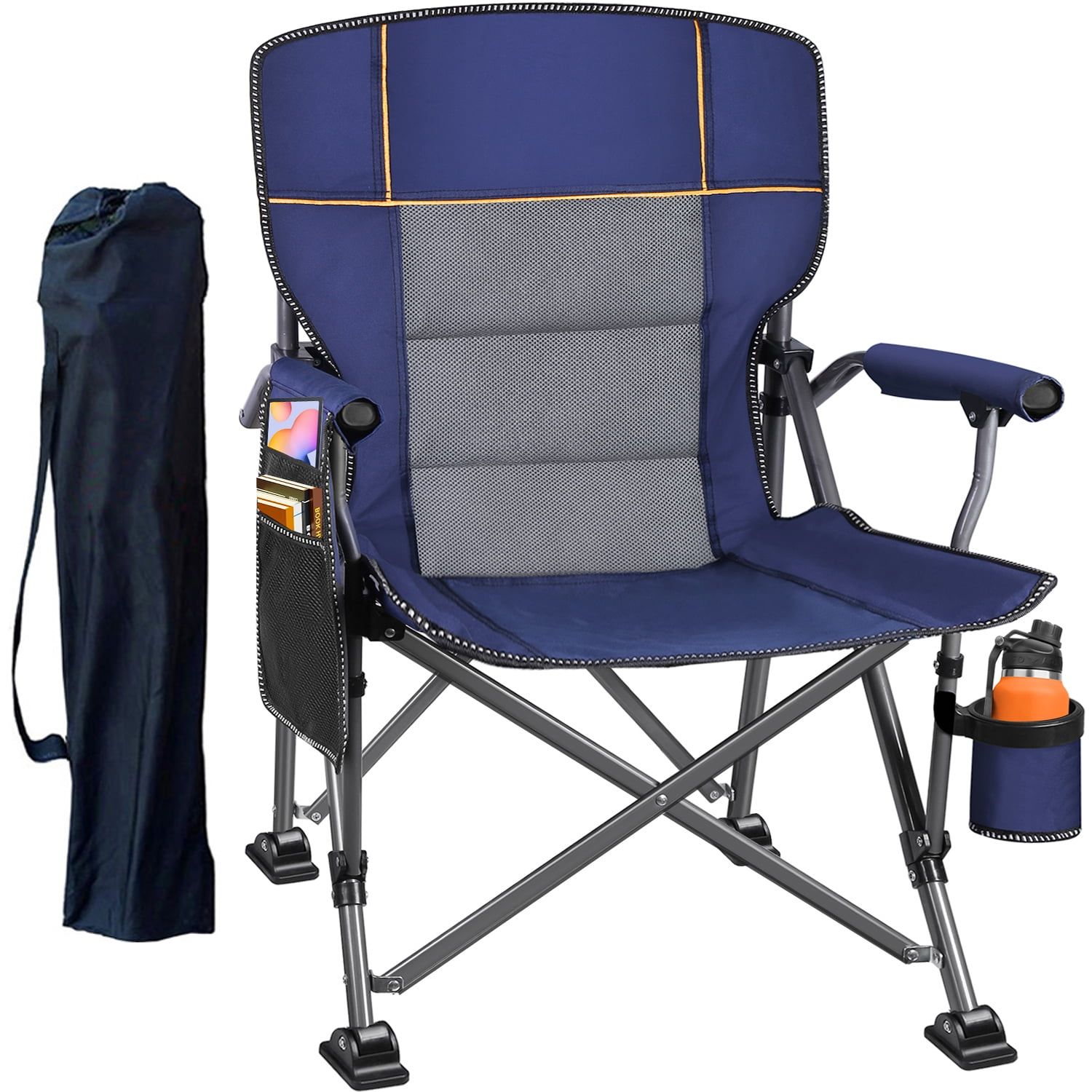 Home > Camping Chairs for Adults, Portable Folding Lawn Chairs with Side Pockets Cup Holder for Outside, Fishing, Camp Garden, Dark Blue